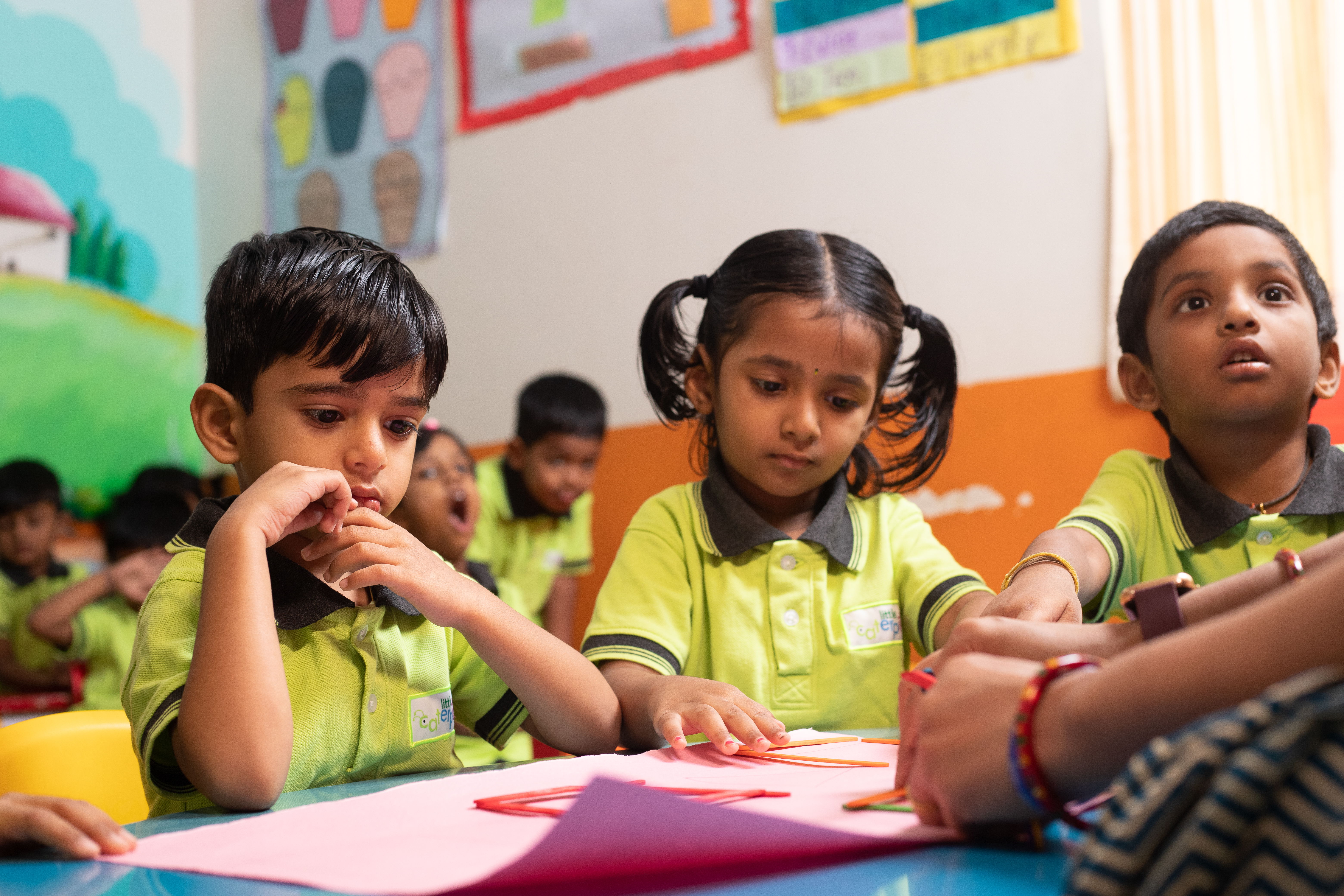 By this stage, our students are independent, responsible, and eager to explore beyond their immediate environment. Ready to embark on a journey into a whole new world, they delve into monthly themes that increase their awareness of environmental issues. Through a plethora of activities, they gain a hands-on understanding of these themes, fostering a deep appreciation for the world around them. Our kindergarteners engage in activity-based learning that includes mastering the alphabet and its phonics, forming words, and understanding number names and values. Hindi letters (swar) are introduced in PP-1, enriching their linguistic foundation.